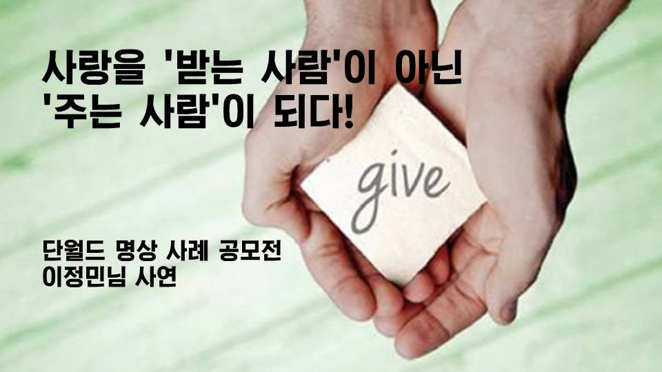 사랑을 '받는 사람'이 아닌 '주는 사람'이 되다!